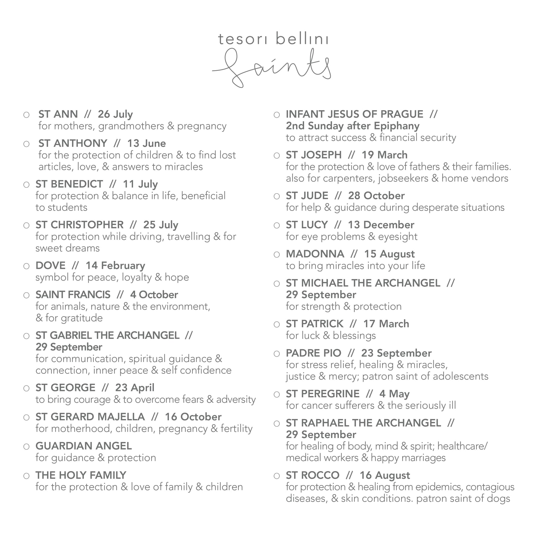 Choose your Saint for the blessing that resonates with you, and your crystal for the energy or tone you’re drawn to - whether soothing amethyst, protective black onyx, or feminine rose quartz to open the heart and invite love in.